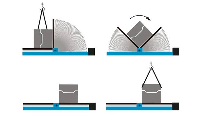 A key feature of this 180-degree mold flipper is its design optimized for facilities with limited floor space. The equipment is installed by utilizing a foundation pit. This allows the machine's tabletop to sit level with the surrounding factory floor upon installation, maximizing the usable space in the workshop area.