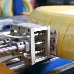 Following drawing and coiling, the coil is automatically strapped using PP or PET bands for initial securing. It is then transferred automatically to the wrapping unit. Here, a through-the-eye wrapping process is applied using materials like woven tape, PE film, or kraft paper, providing vital protection against moisture, dust, rust, and scratches.