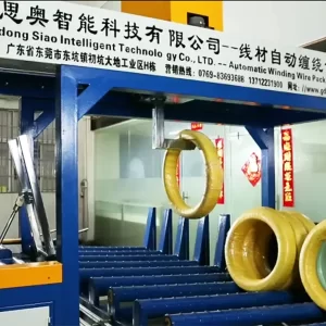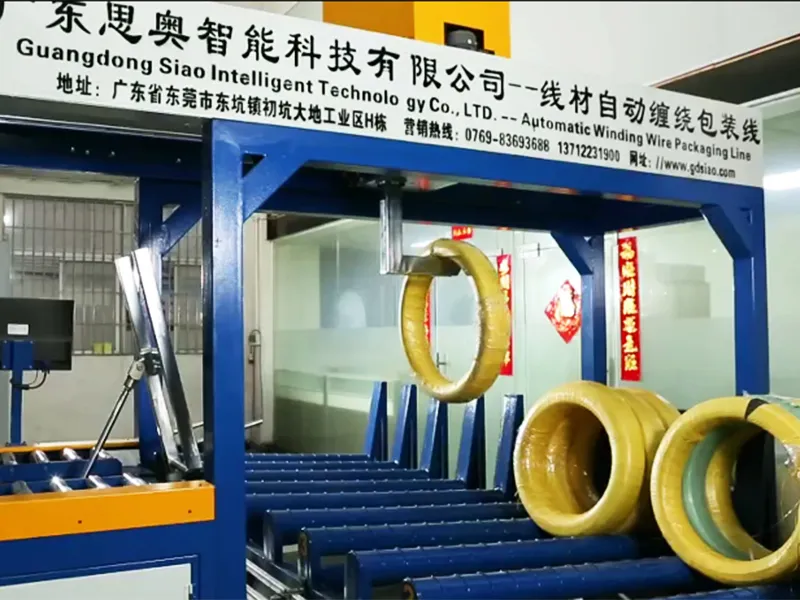 The automated packaging process transforms unprotected wire coils into securely wrapped and neatly arranged units. This protective layer shields the product from environmental factors encountered during storage and transit, such as moisture, dust, and potential surface damage like rust and scratches.