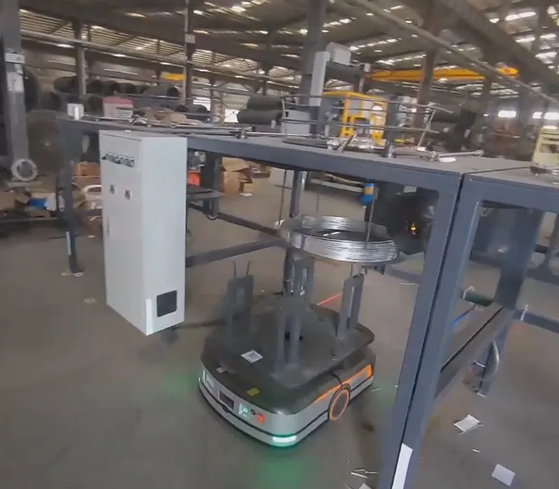 The SA-WS-10 is an Automatic Horizontal Wire Coil Packaging Line designed for efficient wrapping of wire rod and slit coils weighing 2.5-20 kg.