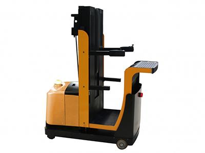 The QDJ Order Picker is an electric stand-on material handling machine designed for high-level order picking. Ideal for narrow aisles due to its short turning radius, it offers a maximum goods tray capacity of 300kg and can reach picking heights up to 5000mm (model dependent). Key features include operational safety, ergonomic design, and stable lifting.