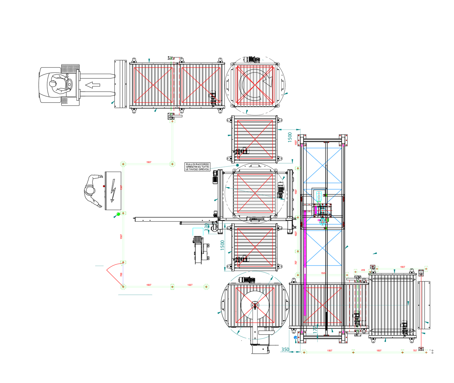 • Features: Motorized roller conveyor on the table, automatic system for gripping and cutting the film, inverter for adjusting the speed of ascent/descent of the film reel holder.